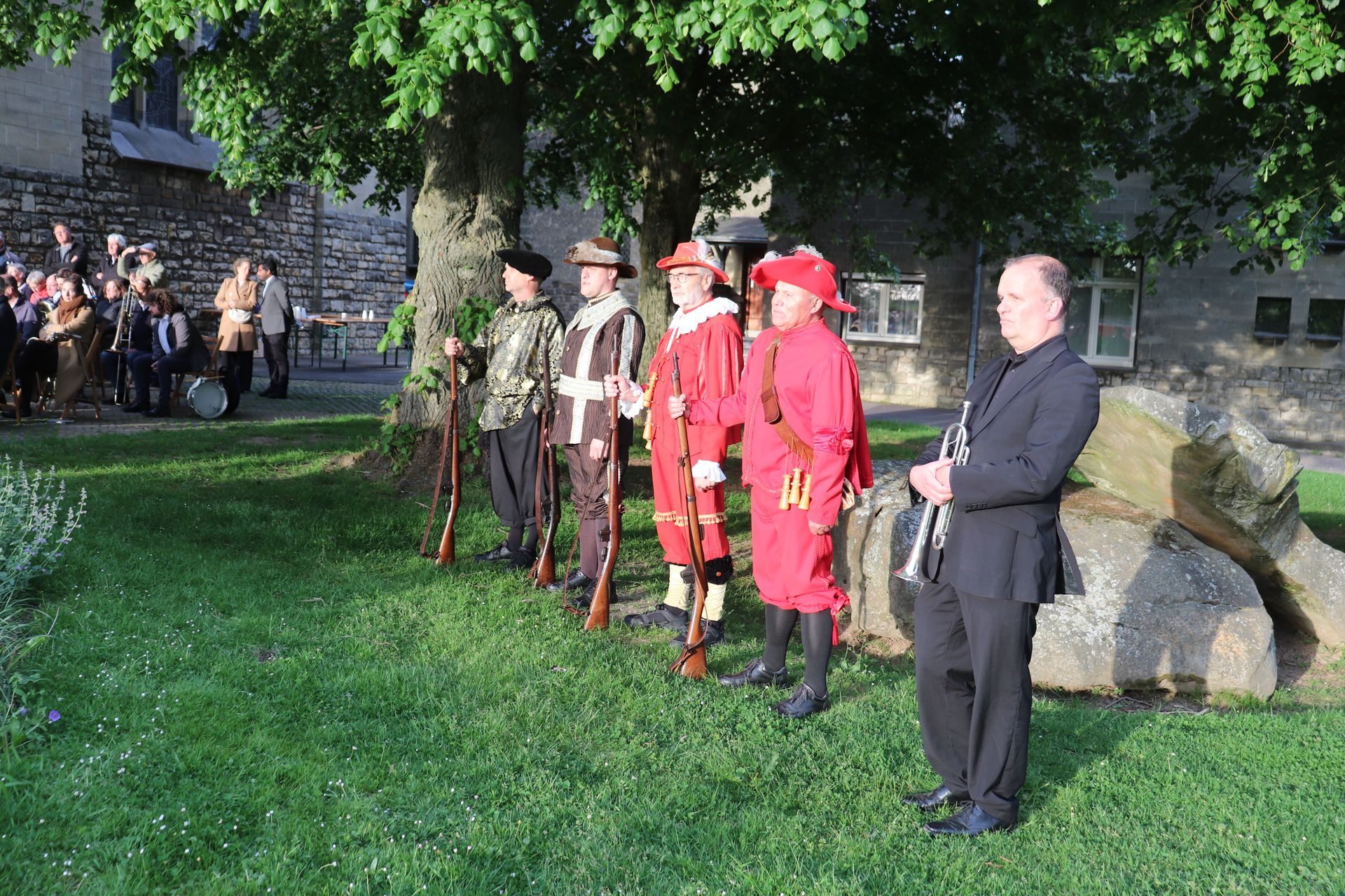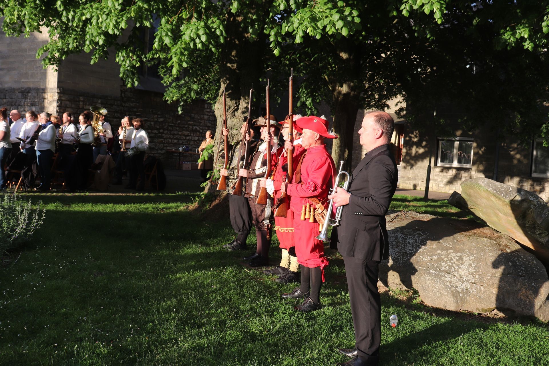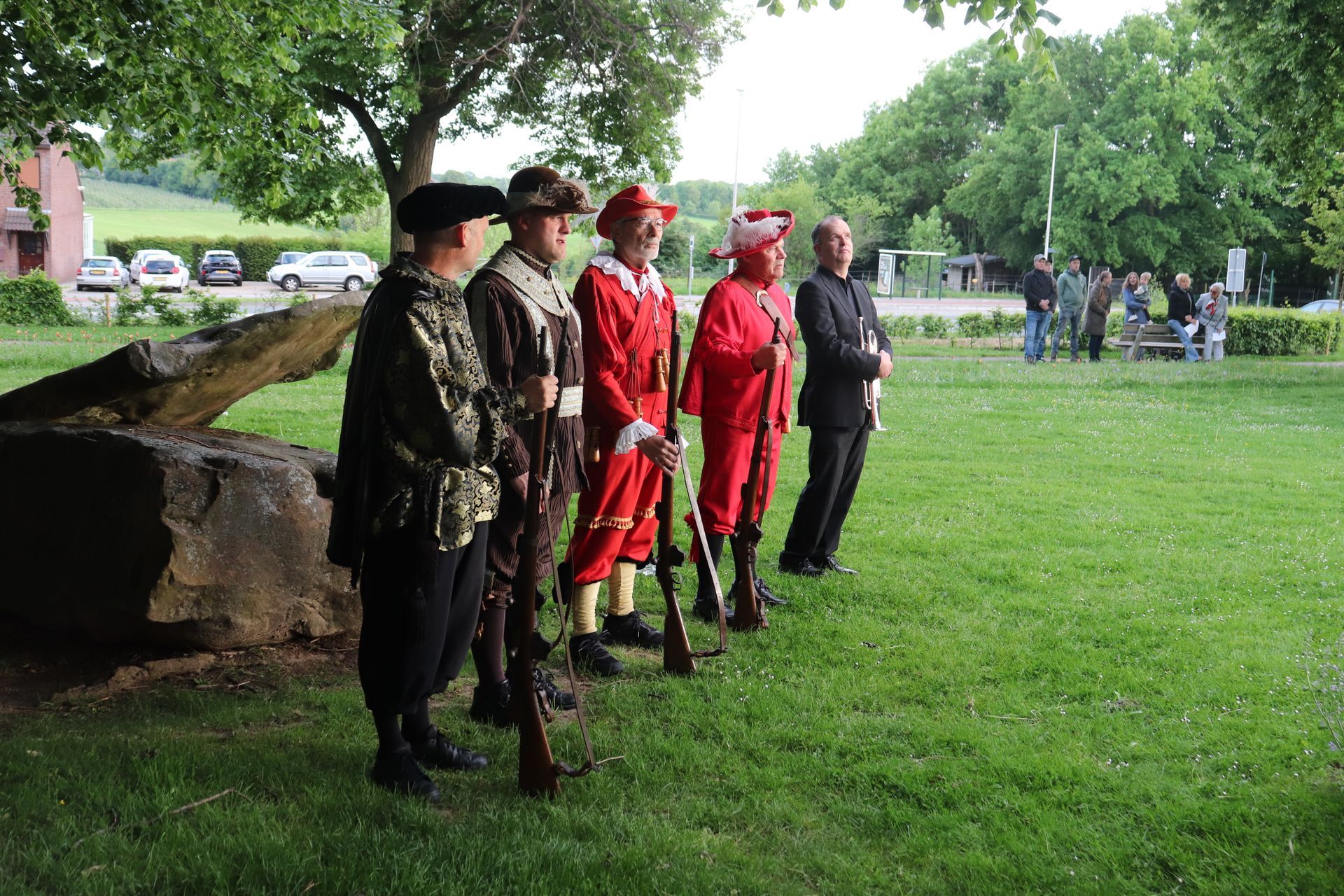 Ook in eigen dorp, en grootser in opzet dit jaar was de dodenherdenking bij de kerk in Berg. Naast het Kernoverleg, de scouting en de schutterij waren dit jaar meerdere verenigingen uit Berg en Vilt aangesloten. Het officiële programma begon om 19:30 uur. Voor enkele van onze leden begon het al eerder, zij begeleiden groepen mensen die uit alle kernen van de voormalige gemeente Berg en Terblijt kwamen gelopen richting de kerk in Berg.