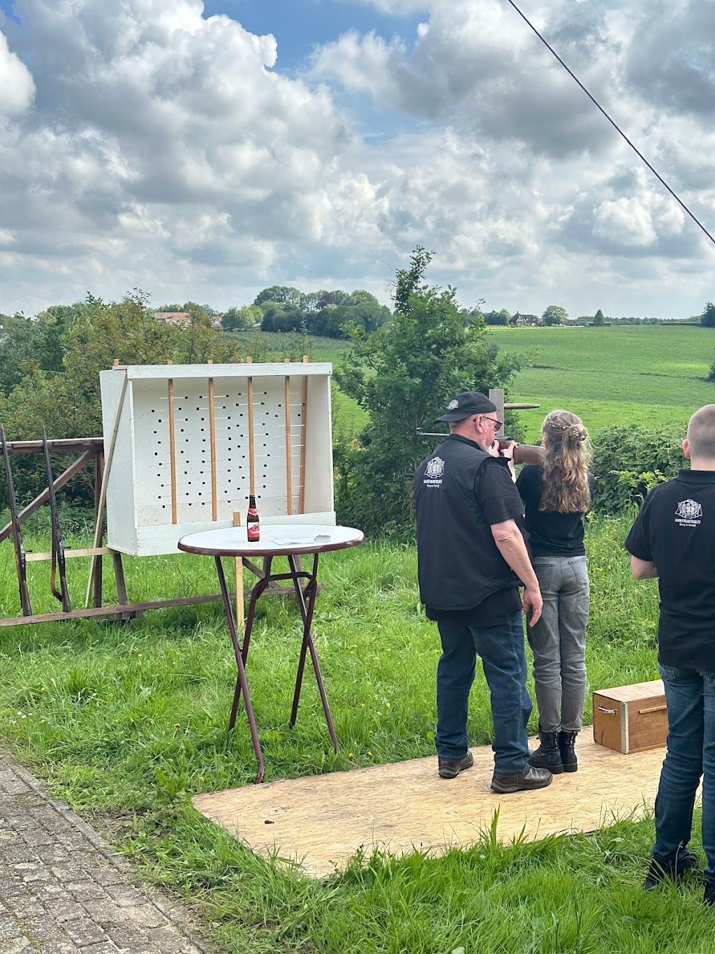 Met de plichtplegingen achter de rug was het tijd voor de strijd om de titel "Koning 2024". Maar liefst 16 leden schreven zich in. Tegen 16:00 uur kon er begonnen worden met schieten, maar niet voordat de voorzitter, de ere-leden en de overige genodigden de openingsschoten hadden gedaan. Dit jaar weer inclusief het rondje van de voorzitter omdat hij het flesje af heeft geschoten. Al was hier nog wat twijfel over want niemand heeft de resten zien wegvliegen. Na enig speurwerk (een soort Flikken Berg) werd toch bevestigd dat Jef het rondje weer voor of van zijn rekening mag nemen.