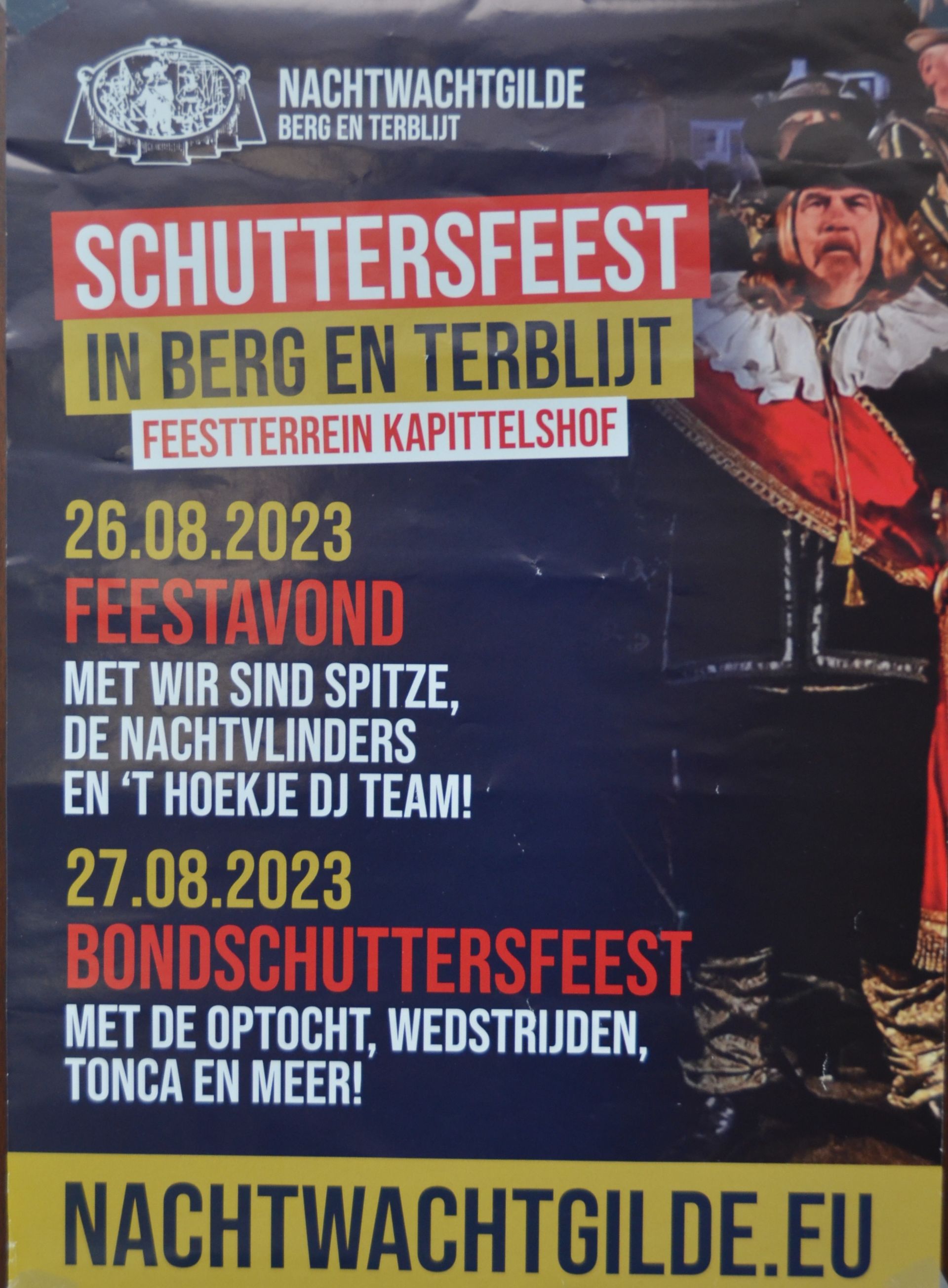 Op zondag 27 augustus vond het hoogtepunt van het weekend plaats: het bondsfeest van de schuttersbond Berg & Dal. Deze zondag was er van alles te beleven op en rondom het feestterrein aan de Grote Straat. Zo was er natuurlijk de kleurrijke optocht door de straten van Berg en de beoordelingswedstrijden van de verschillende onderdelen van de schutterijen. Helaas kon door de harde wind de schietwedstrijd niet doorgaan.